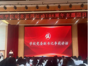 5月9日,昆明学院在博学报告厅举办纪念五四运动106周年主题团日活动,表彰先进典型,传承五四精神。