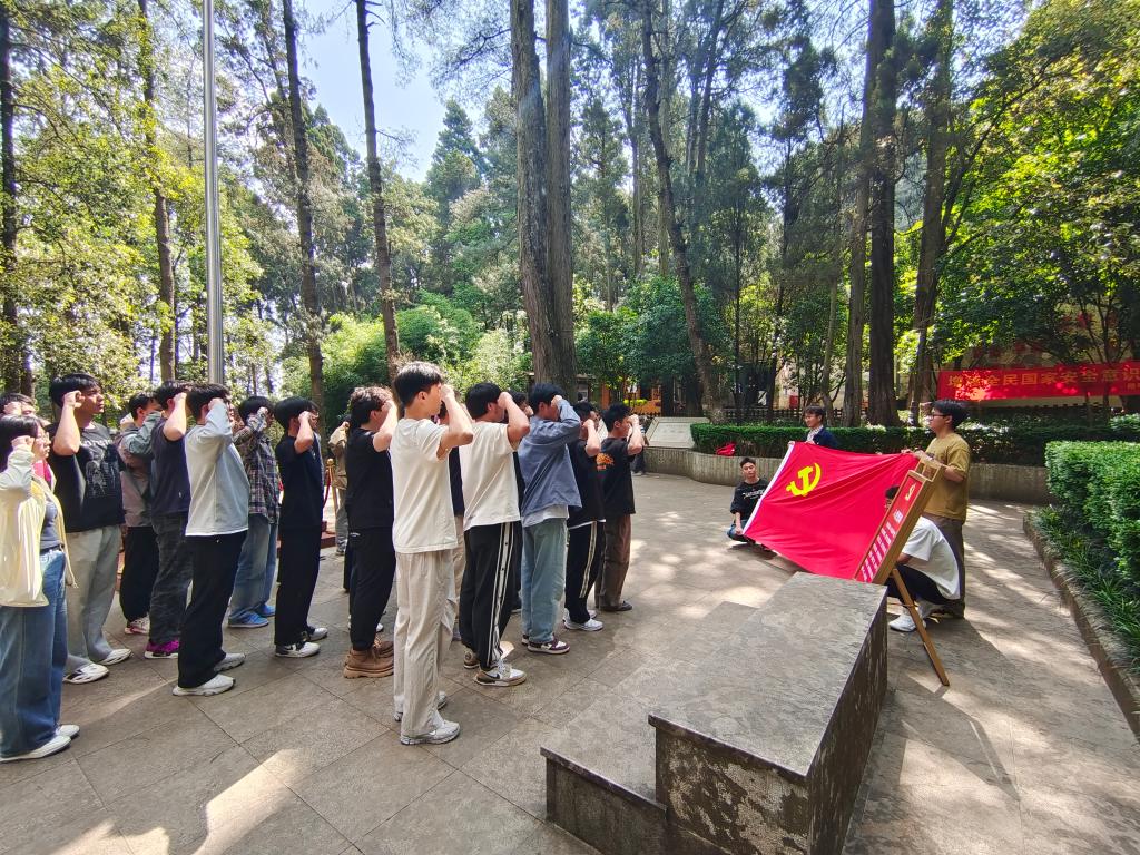 为深化党史学习教育,强化学生党员党性修养,机电工程学院2025年4月20日组织学生党员赴昆明西山开展“踏寻红色地标、赓续精神血脉”主题党日活动。通过徒步登山、参观红色教育基地、重温入党誓词等环节,引导青年党员坚定理想信念,厚植爱国情怀。