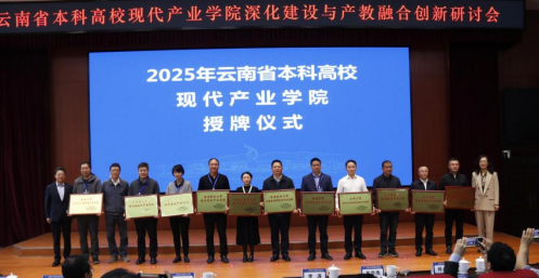 近日,由云南省教育厅指导、云南高校产教融合发展联盟主办、大理大学承办的“云南省本科高校现代产业学院深化建设与产教融合创新研讨会”在大理成功召开。昆明学院机电工程学院院长钱开国应邀出席在开幕式上代表学校接受“省级智能制造现代产业学院”授牌,并作专题汇报,分享学院在智能制造现代产业学院建设方面的经验与成果。云南云内动力机械制造有限公司总经理张思泽作为合作企业代表共同参会并发言。