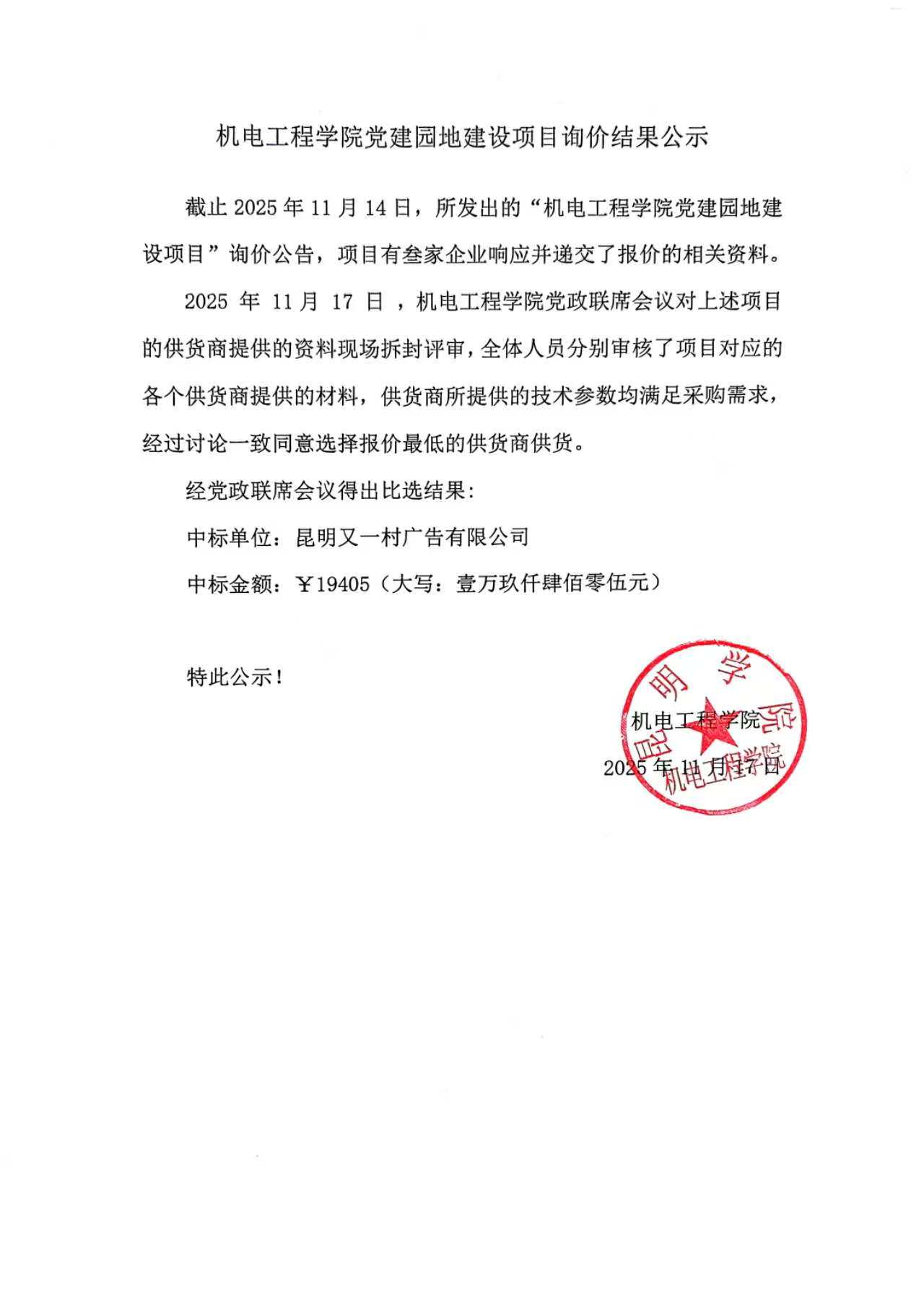 机电工程学院工程训练实训耗材采购项目询价结果公示
